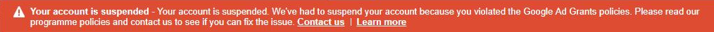 If your Google Ad Grants account has been unexpectedly suspended, this article will help you through the process of getting it back up and running in as little time as possible, as well as providing preventative measures that will keep your account suspension free.