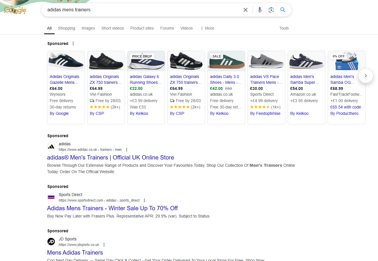 Brand + product/location searches now this is where clear intent is shown by a user e.g. adidas running shoes they are showing a very clear intent towards a certain product.