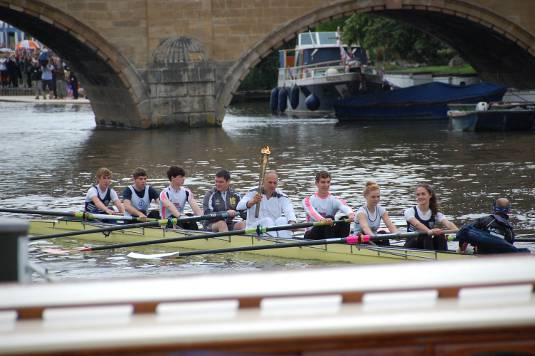 This morning the ‘Frogs were out in force to cheer The Olympic Torch Relay through Henley-on-Thames. Even though the morning was grey there was a great turn out with the riverbank full of spectators all vying for the best views of the Torch bearers.